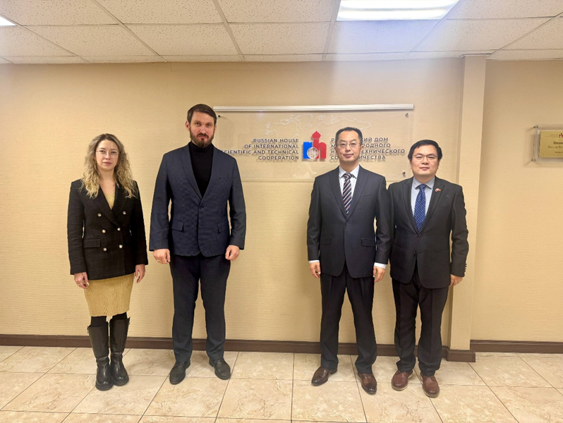 23 декабря 2025 года в Российском доме международного научно-технического сотрудничества состоялась рабочая встреча с представителями Посольства Китайской Народной Республики в Российской Федерации. С китайской стороны участие приняли советник Чжан Вэй и второй секретарь по делам науки и технологий Чжан Вэньбинь. Российскую сторону представляли генеральный директор РД МНТС Дмитрий Протасовский и руководитель отдела по работе с Китаем Юлия Соина.